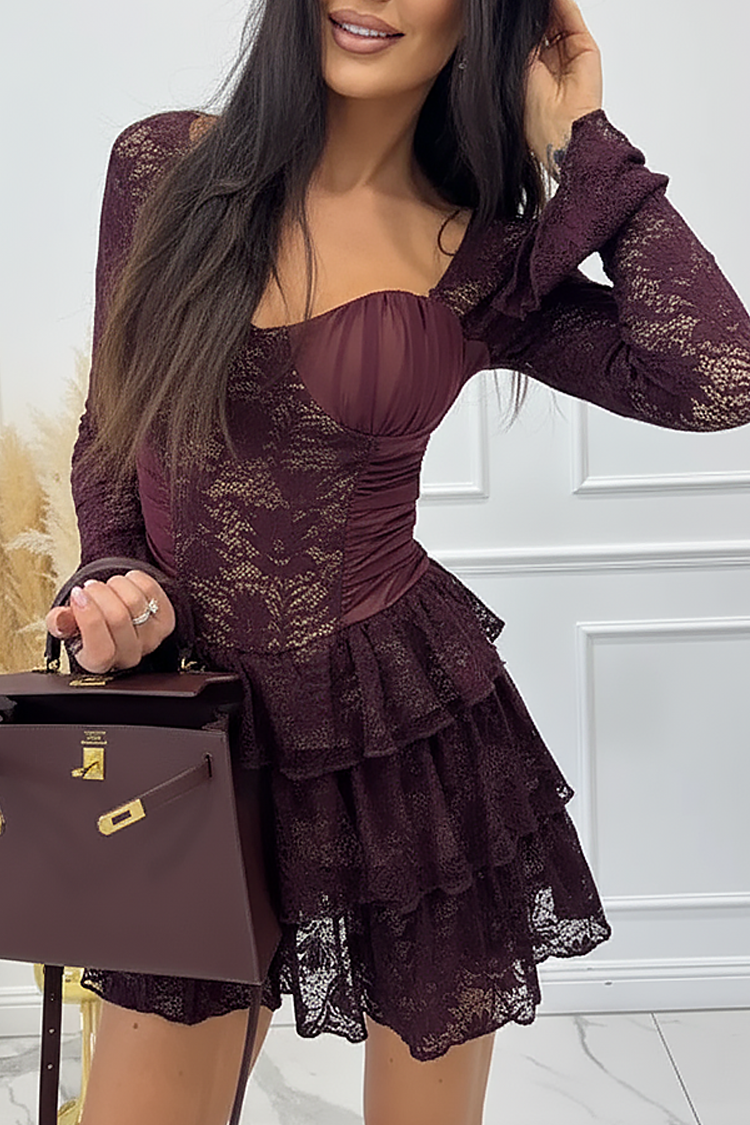 - Modelul are o croială modernă, decolteu sexy, mâneci lungi și dantelă.