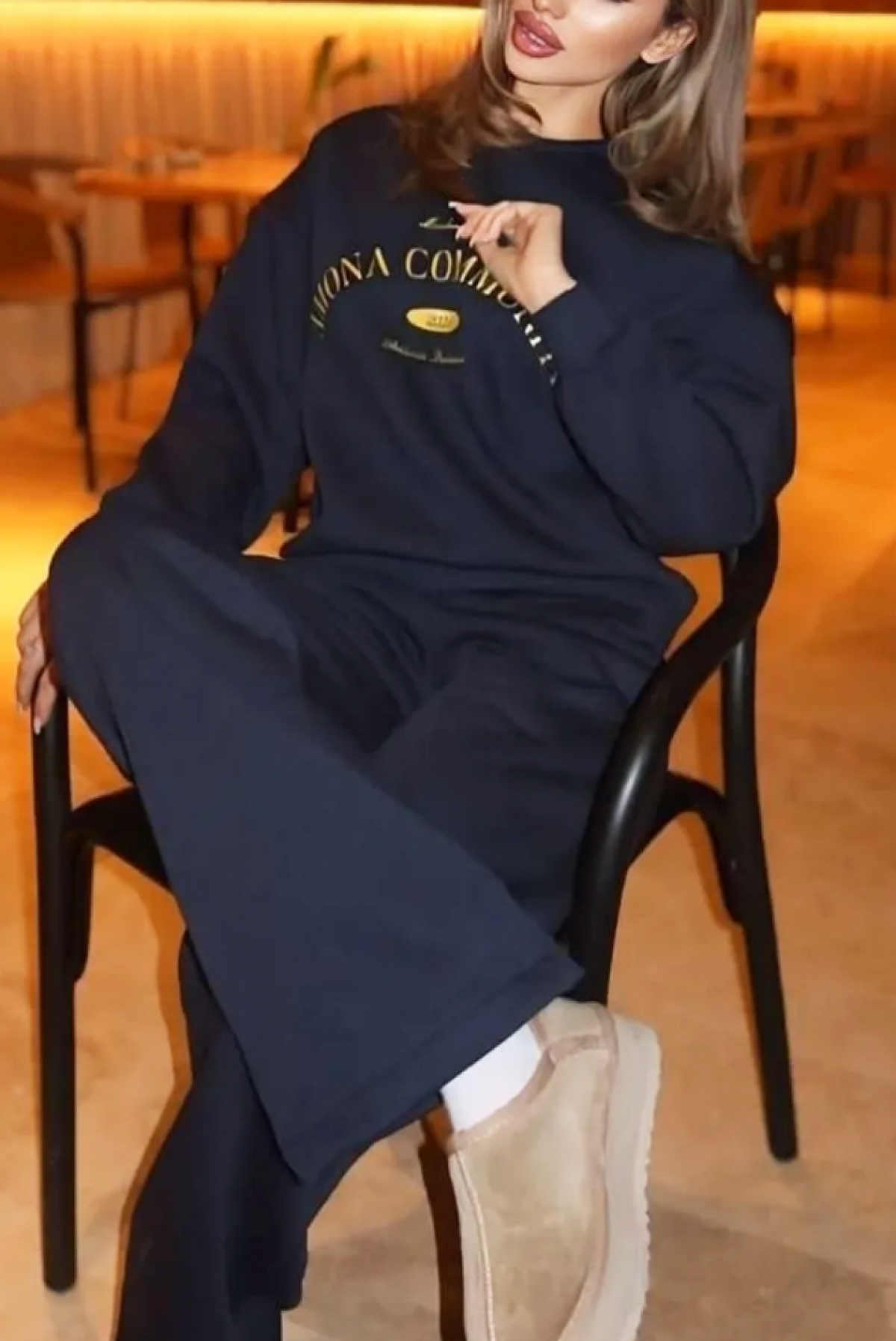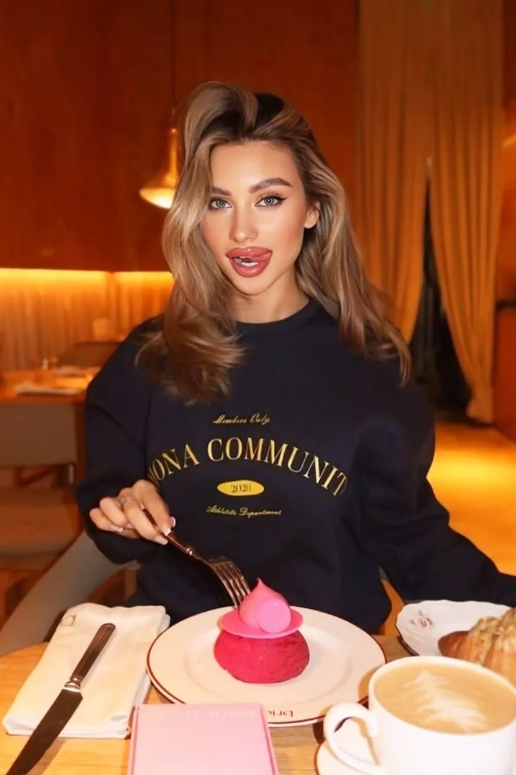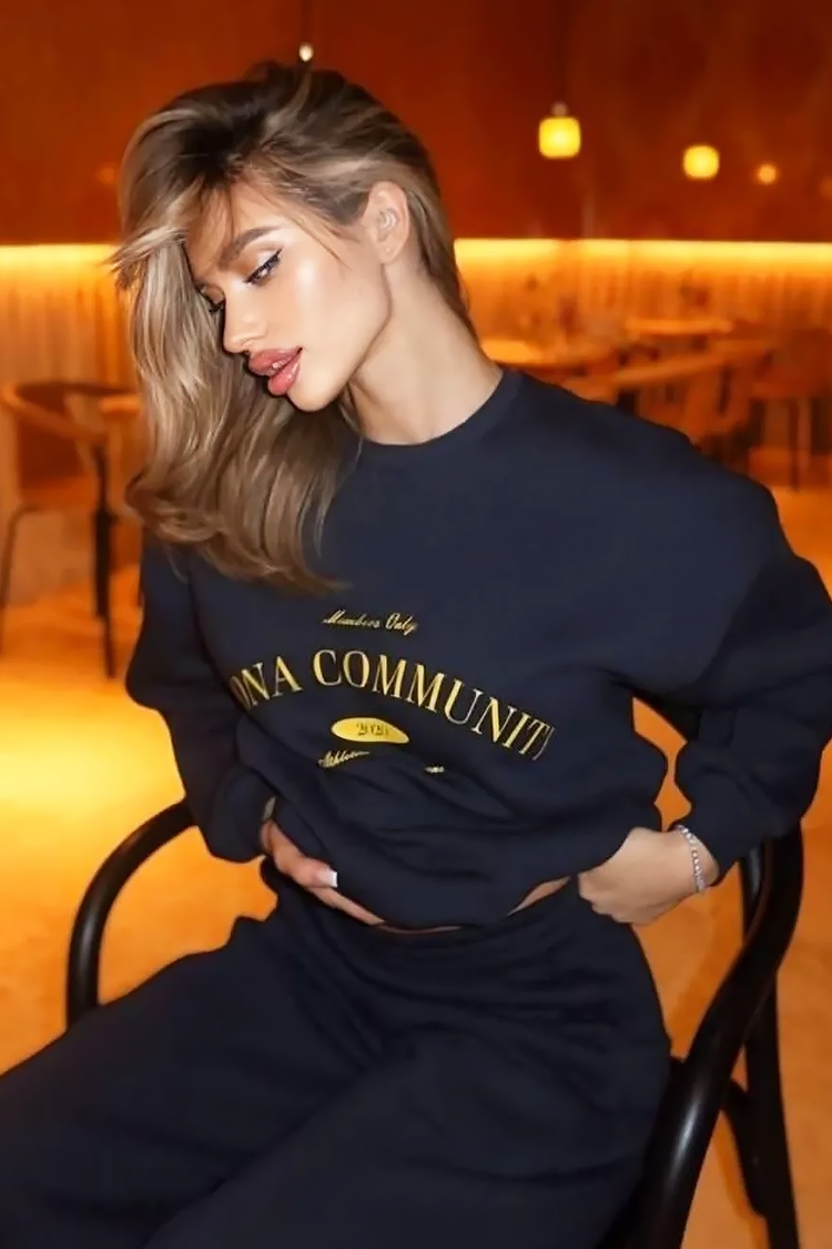 - Partea de sus este o bluză cu o croială lejeră și clasică, cu o inscripție spectaculoasă.