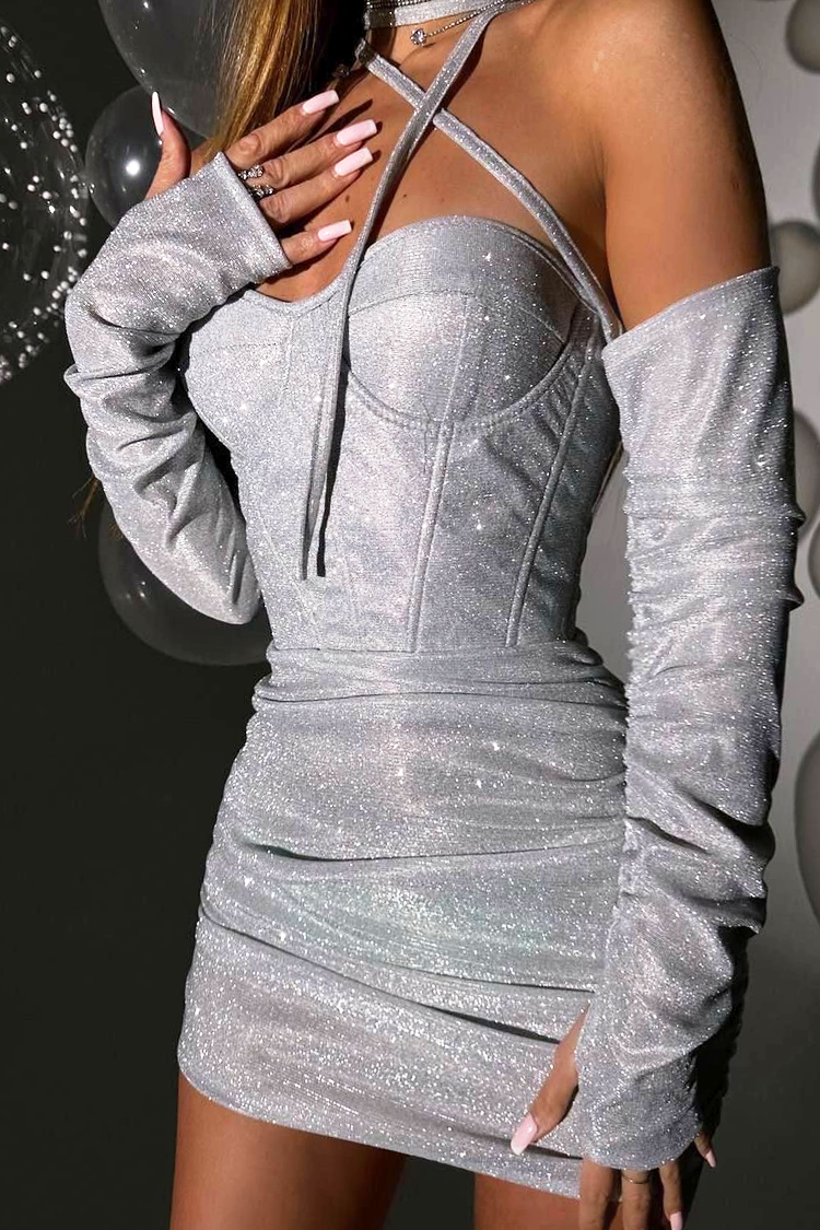 - Pentru un look de petrecere perfect, alege această rochie scurtă cu un design atractiv și strălucitor.