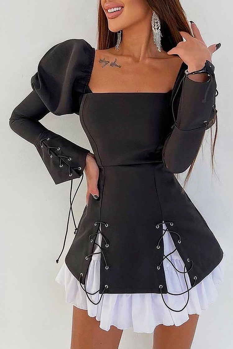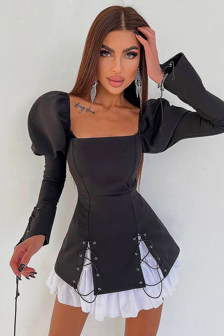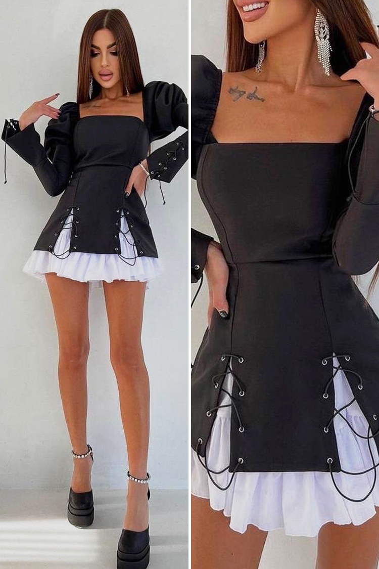 - Rochia are un design sexy, decolteu pătrat și mâneci lungi spectaculoase.