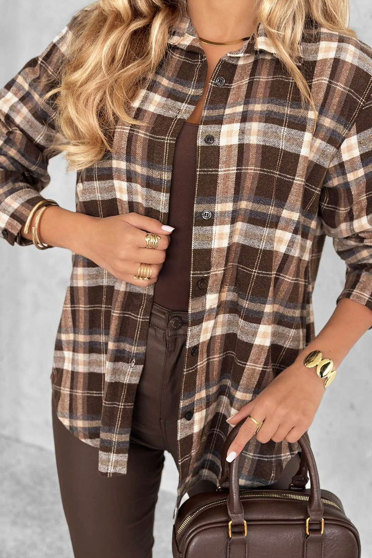 - Modelul are un design în carouri, închidere standard cu nasturi și un design oversize.