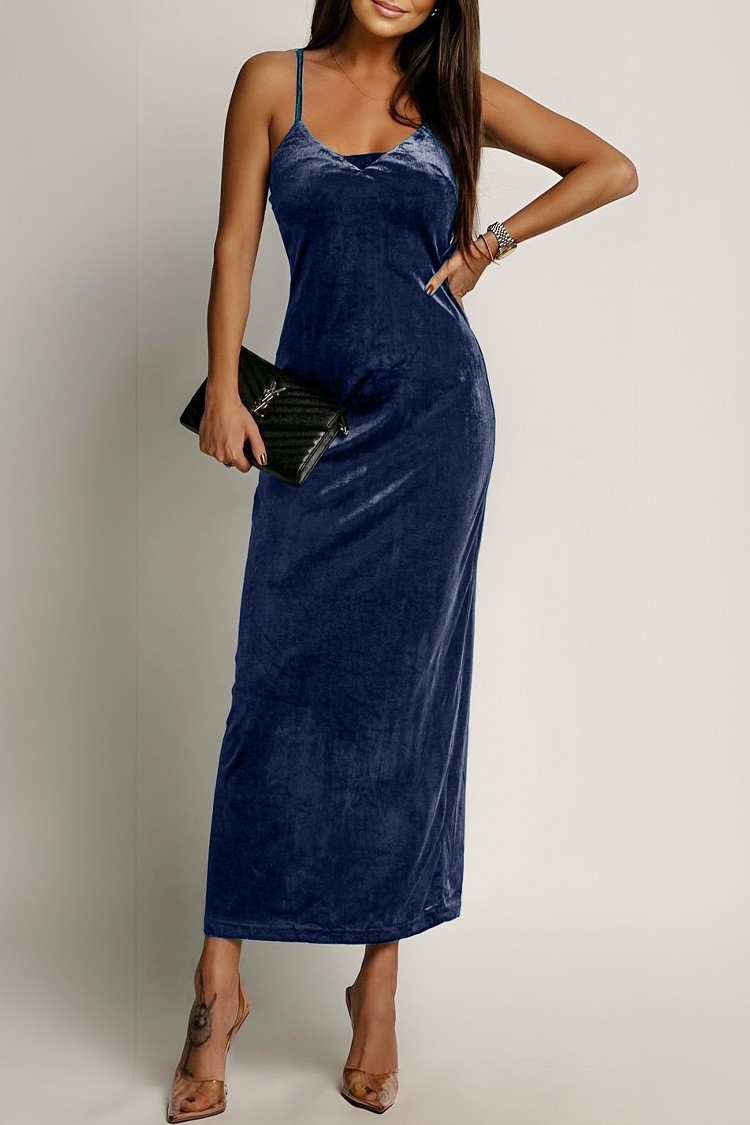 - Rochie elegantă de culoare albastru închis, potrivită pentru ocazii mai speciale.