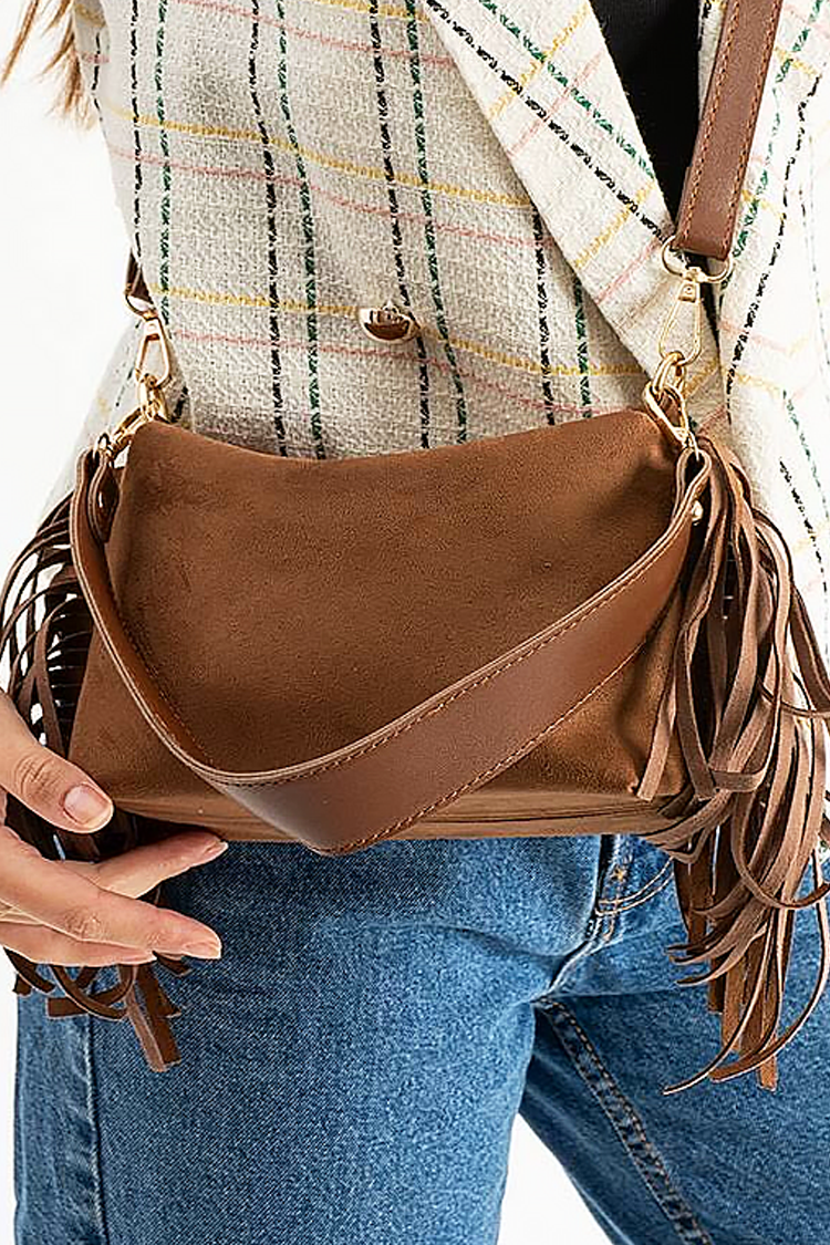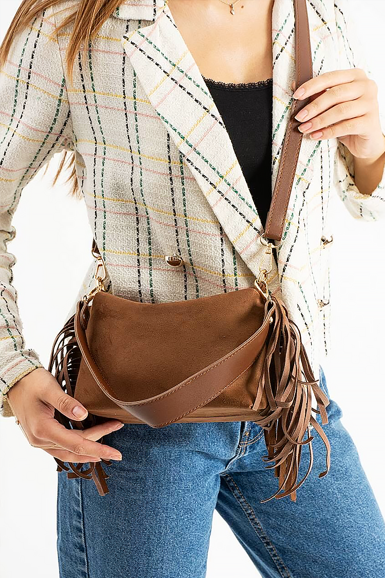 - Modelul are o curea lungă suplimentară pentru umăr, închidere practică cu fermoar și franjuri impresionante.