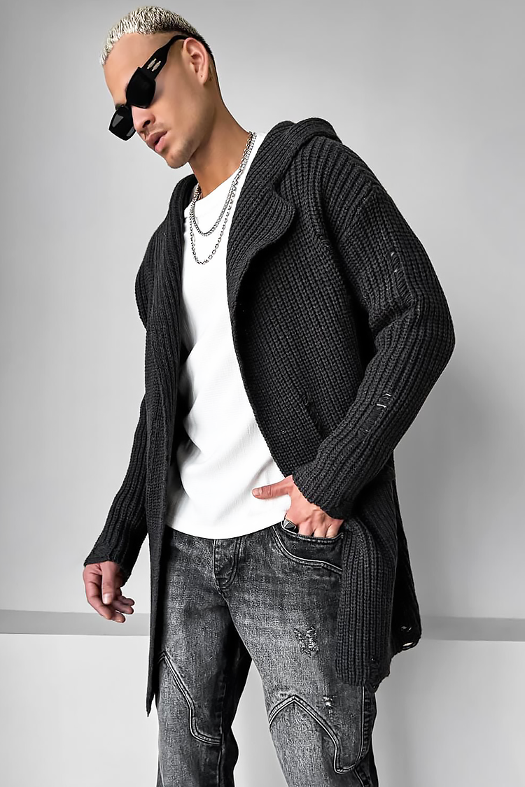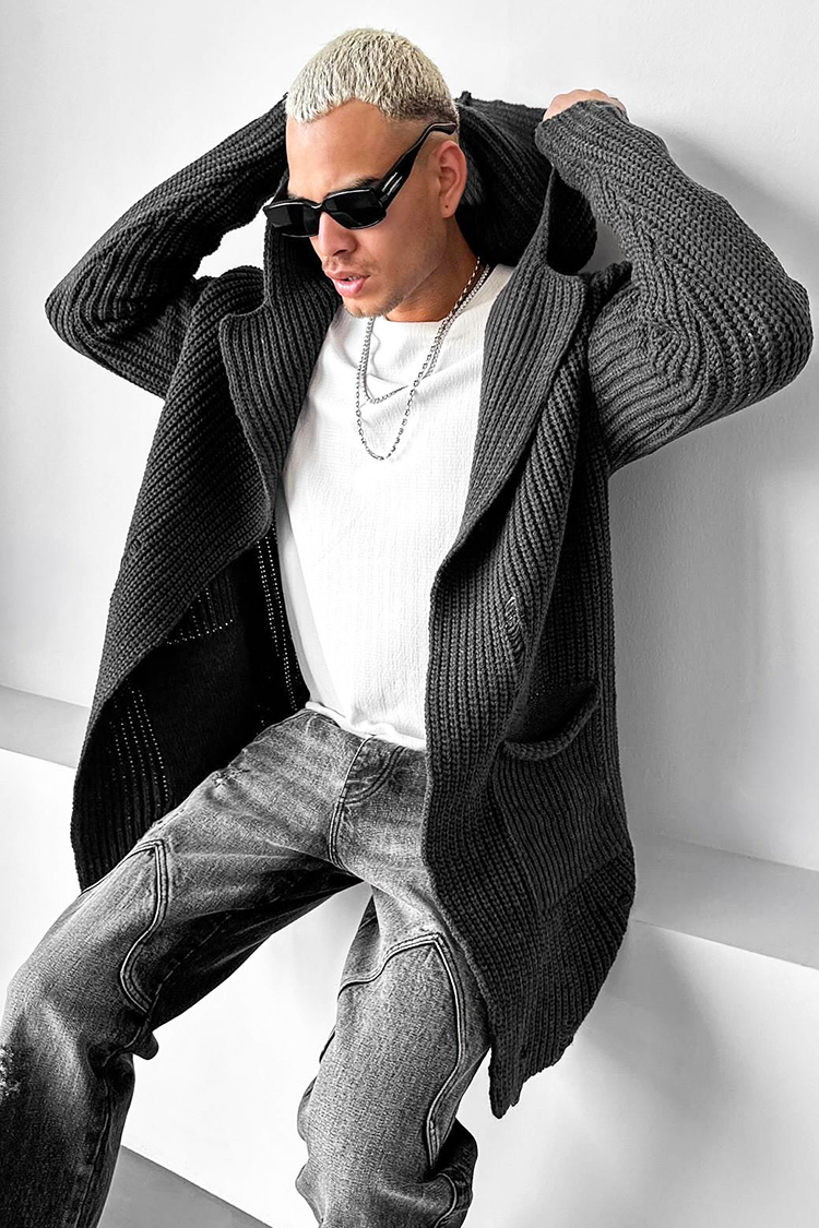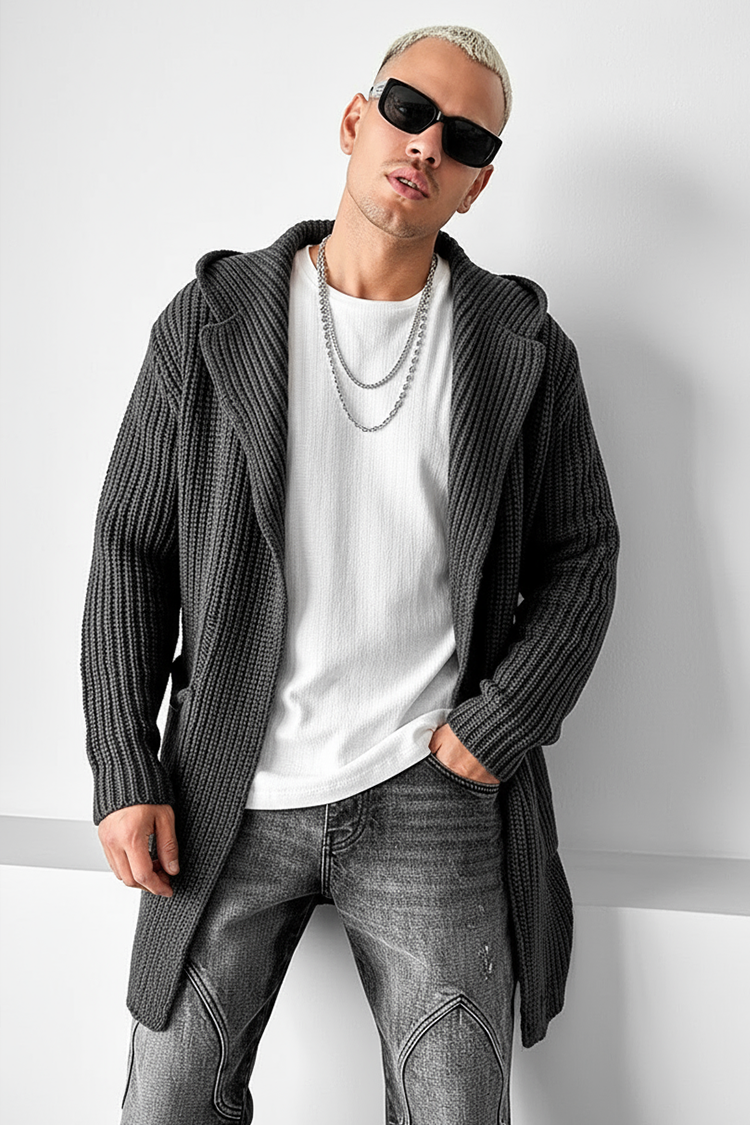 - Cardigan confortabil pentru bărbăti, cu glugă și buzunare, de culoare grafit, potrivit pentru ținuta de zi cu zi.