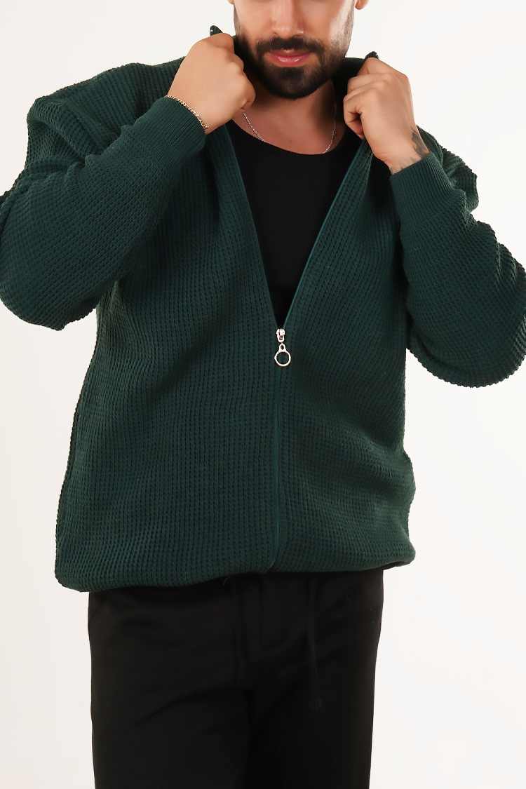 - Cardigan confortabil pentru bărbăti, model BASIC, de culoare verde petrol, potrivit pentru viața de zi cu zi.