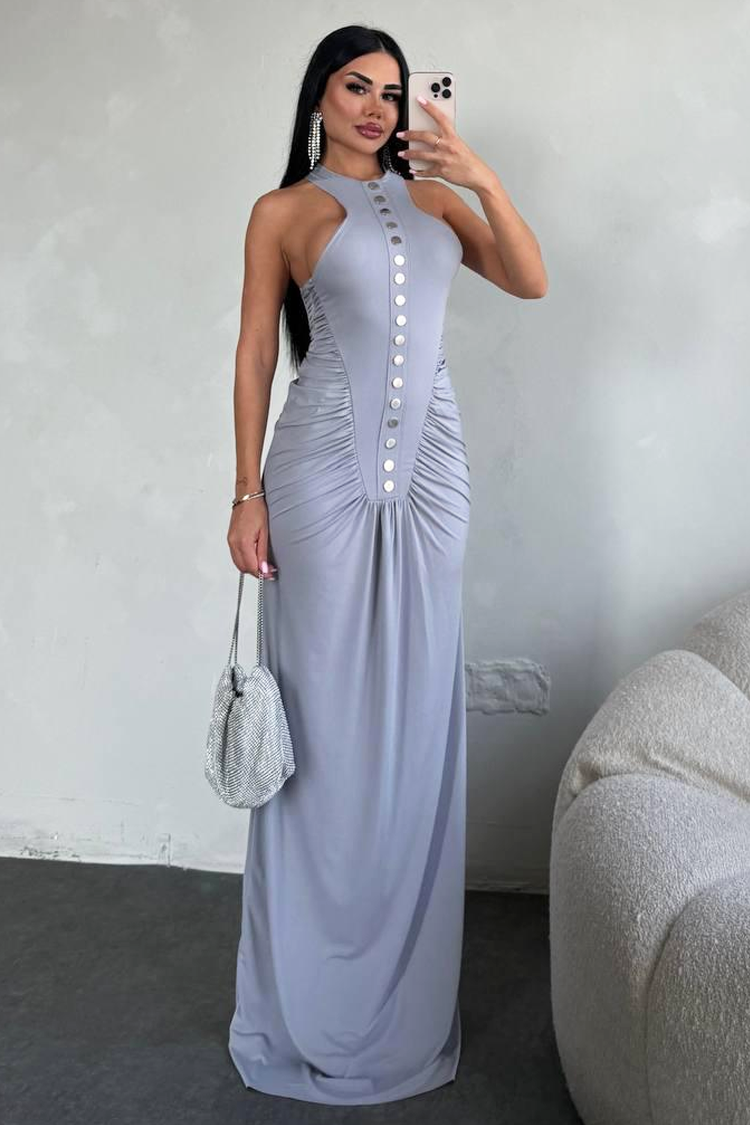 - Pentru un look elegant, alege această rochie lungă cu un design atractiv.