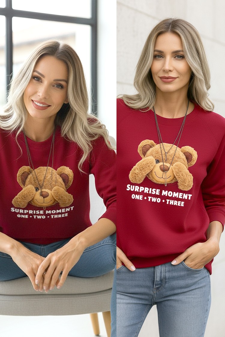 - Se potrivește perfect oricărei siluete. Modelul are mâneci lungi, o croială confortabilă și un imprimeu fermecător cu ursuleți.