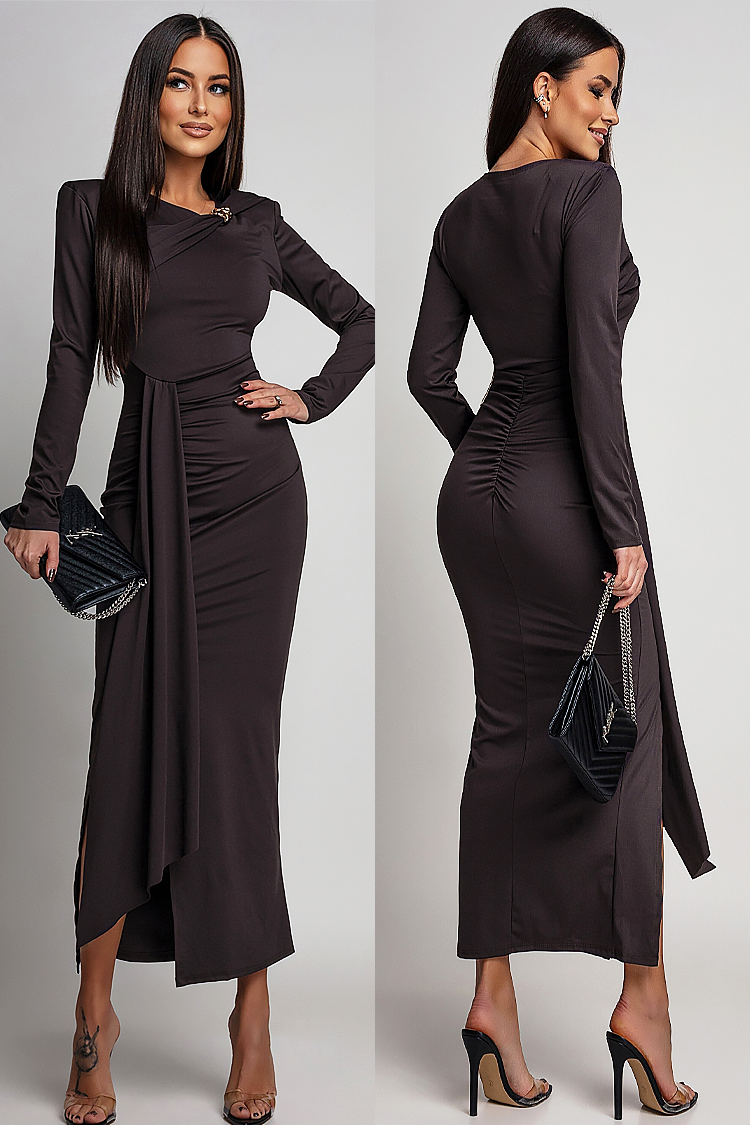 - Pentru un look formal, alege această rochie midi cu un model monocromatic.