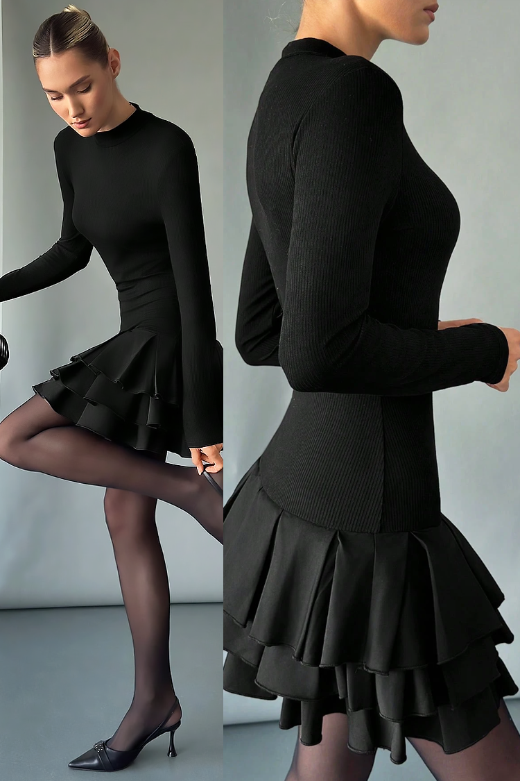 - Modelul are o croială sexy pe corp, o croială evazata în partea de jos și un decolteu rotund.
