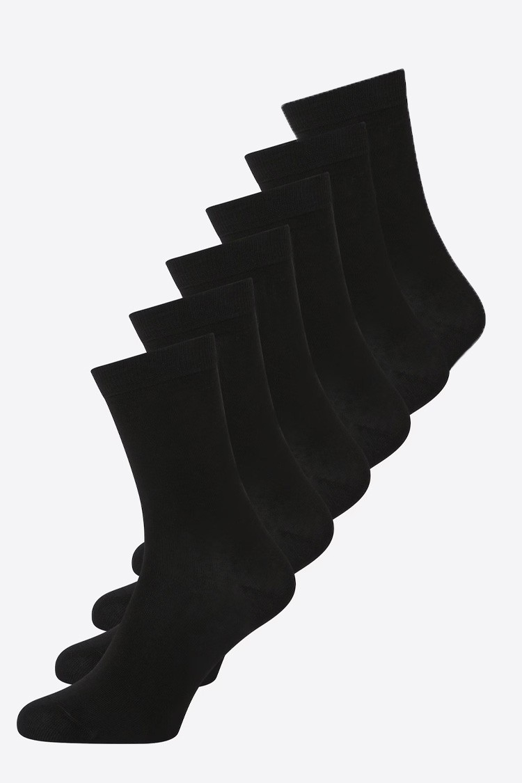 - Set de șase șosete negre clasice, potrivite atât pentru ținute de birou, cât și pentru ținute de zi cu zi.