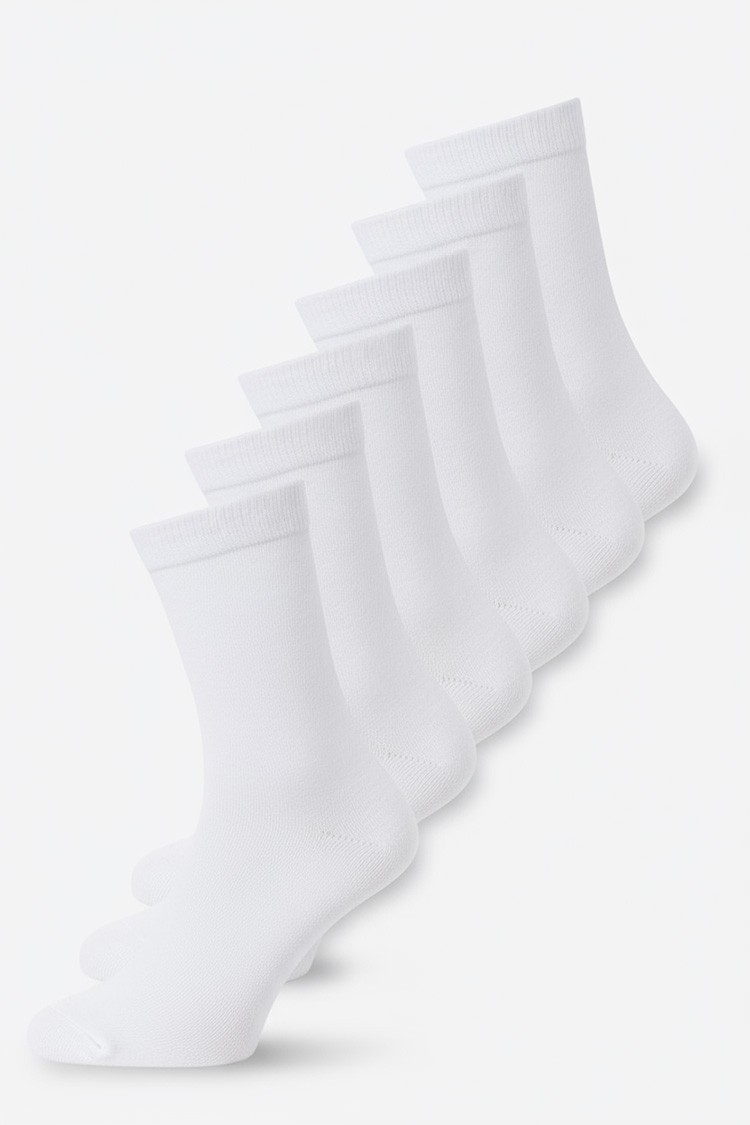 - Set de șase șosete albe, potrivite atât pentru ținute de birou, cât și pentru ținute de zi cu zi.