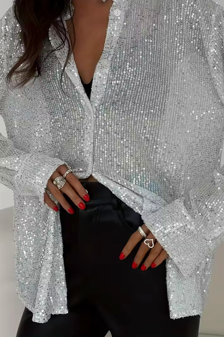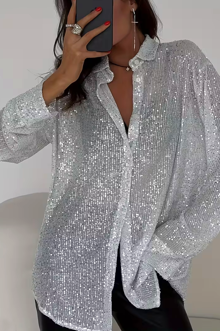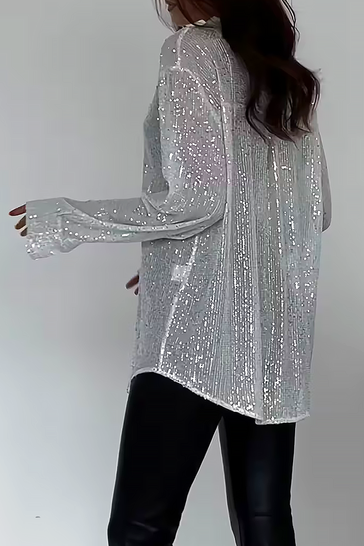- Cămașa are mâneci lungi și închidere standard cu nasturi pe lungime și guler.