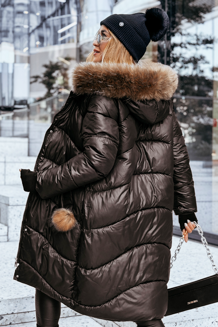 - Modelul are o glugă cu puf și buzunare practice, un design matlasat și un puf decorativ la buzunar.