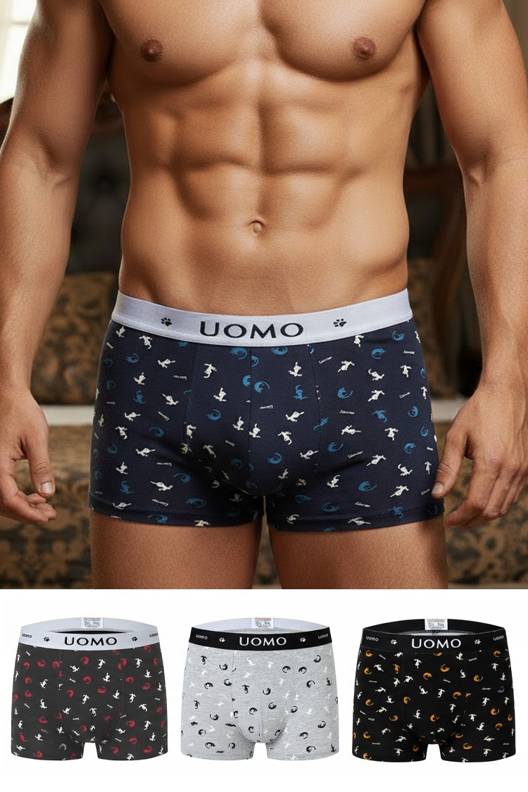 - Set de patru boxeri pentru bărbați cu un design basic cu bandă elastică cu inscripție, confecționați din țesătură de bumbac respirabilă.