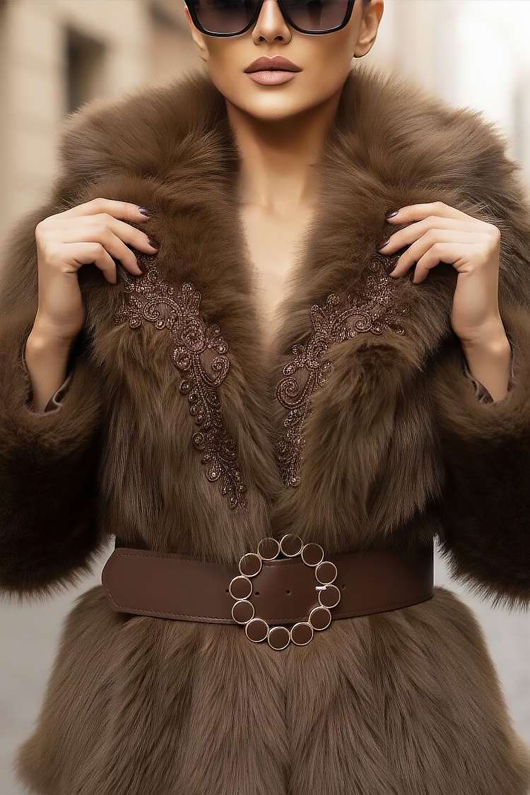 - Modelul combină un guler voluminos spectaculos cu o broderie frumoasă, buzunare confortabile și o curea atractivă!