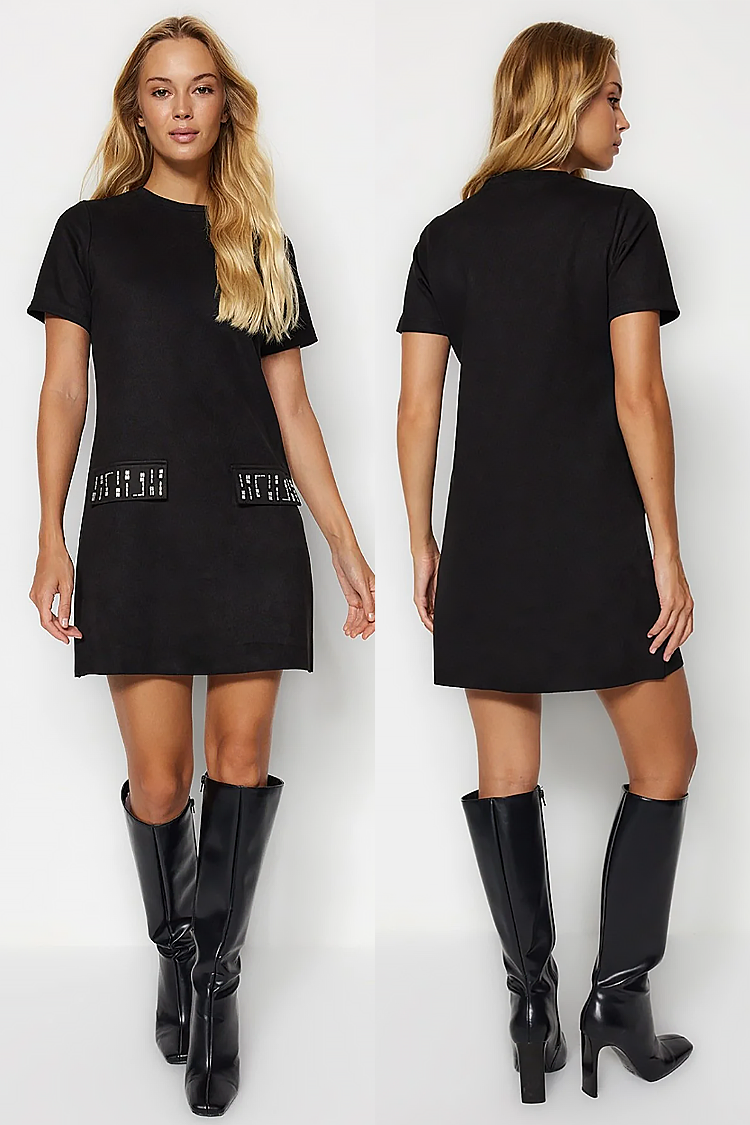 - Se poate combina cu cizme sau botine și o geantă mică din piele ecologică.