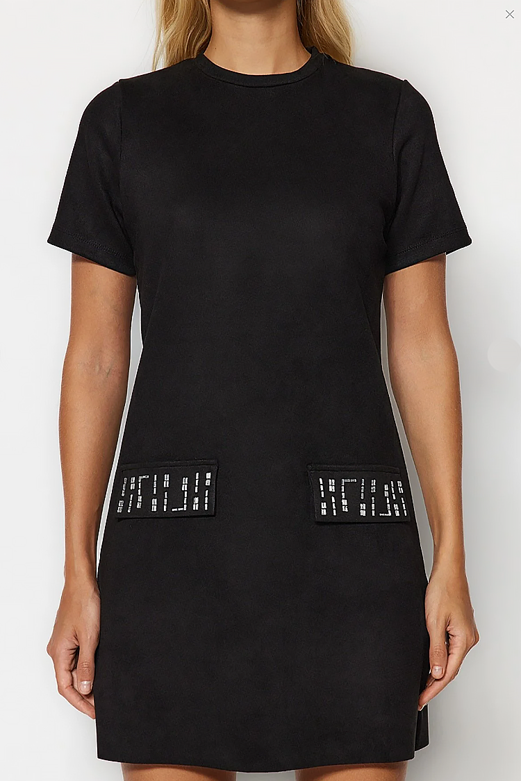 - Modelul are o croială clasică, mâneci scurte și buzunare decorative spectaculoase.