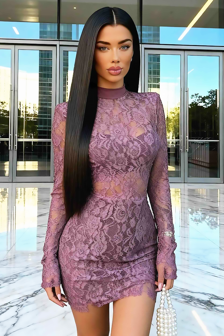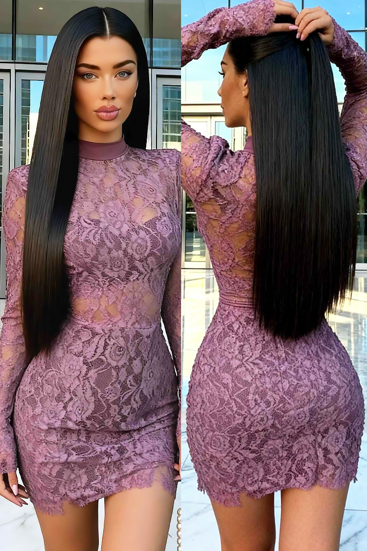 - Modelul are o croială sexy și mulată, mâneci lungi și dantelă pe toată lungimea.