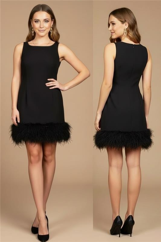 - Pentru un look elegant, alege această rochie scurtă, potrivită pentru evenimente de seară și look-uri festive.