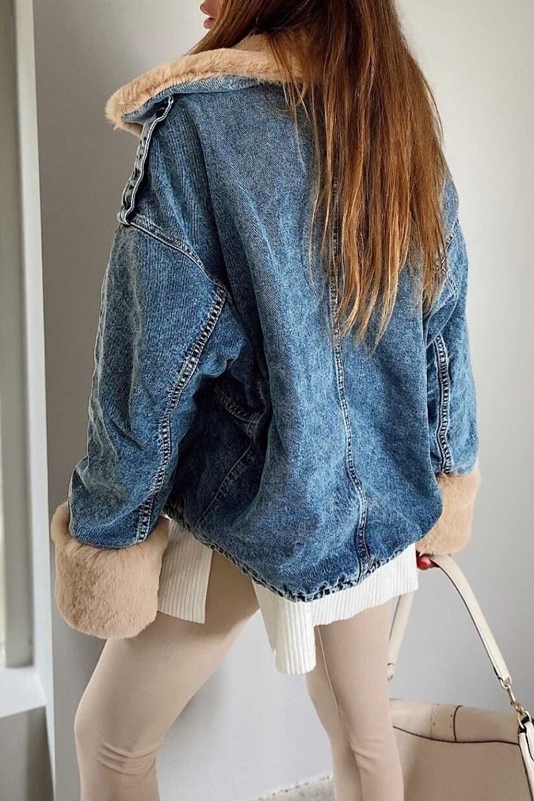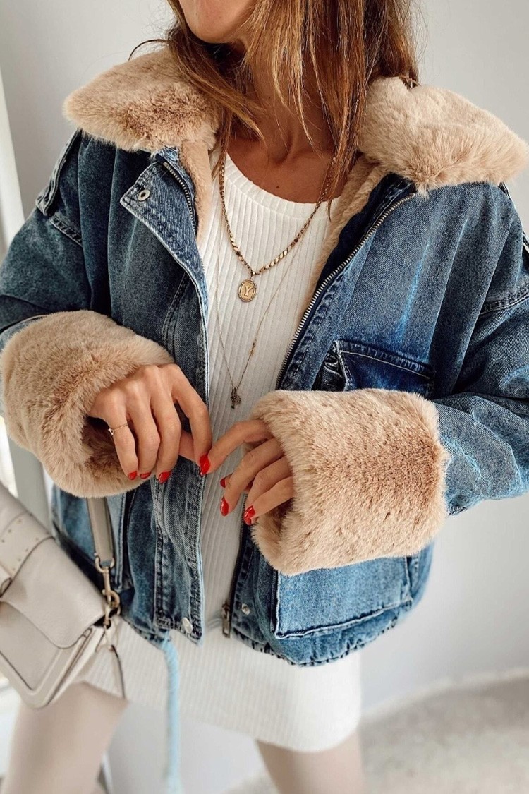- Model elegant, cu buzunare frontale practice, un guler voluminos spectaculos din puf, manșete din puf și închide cu fermoar și nasturi.