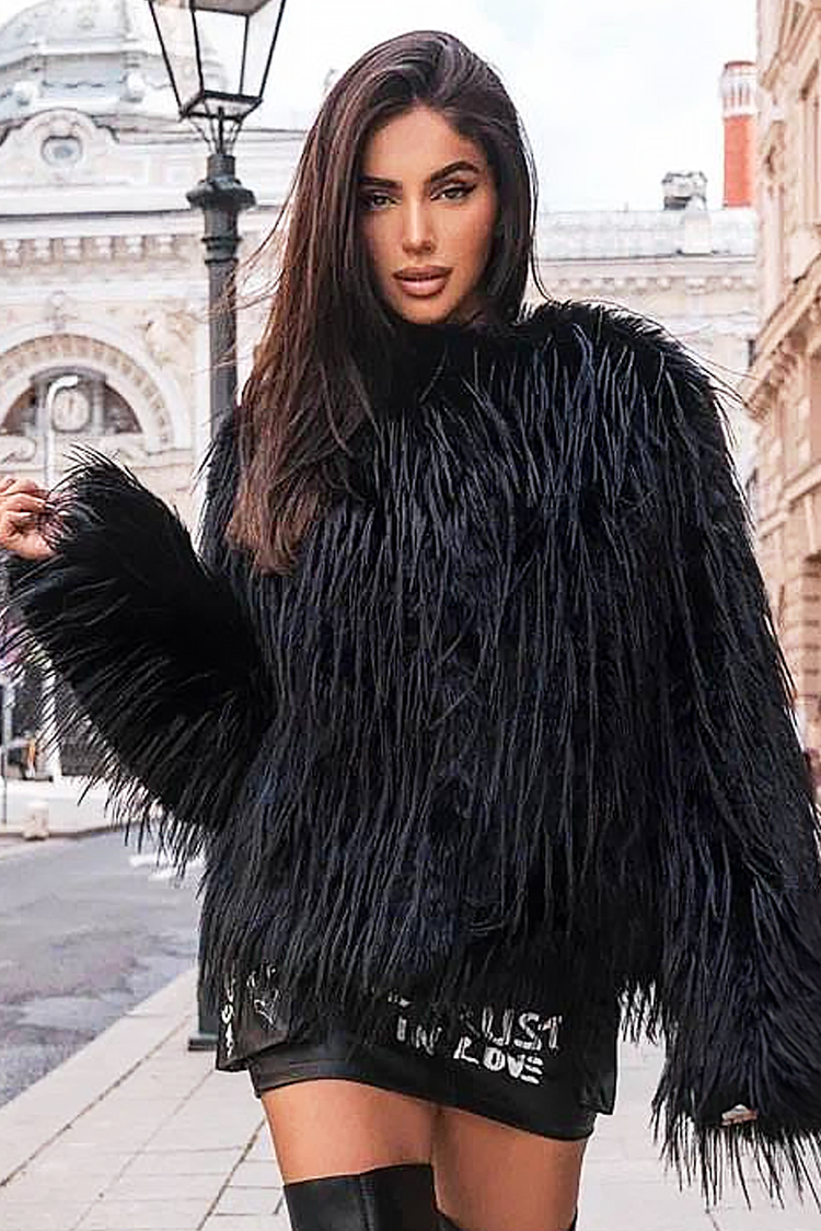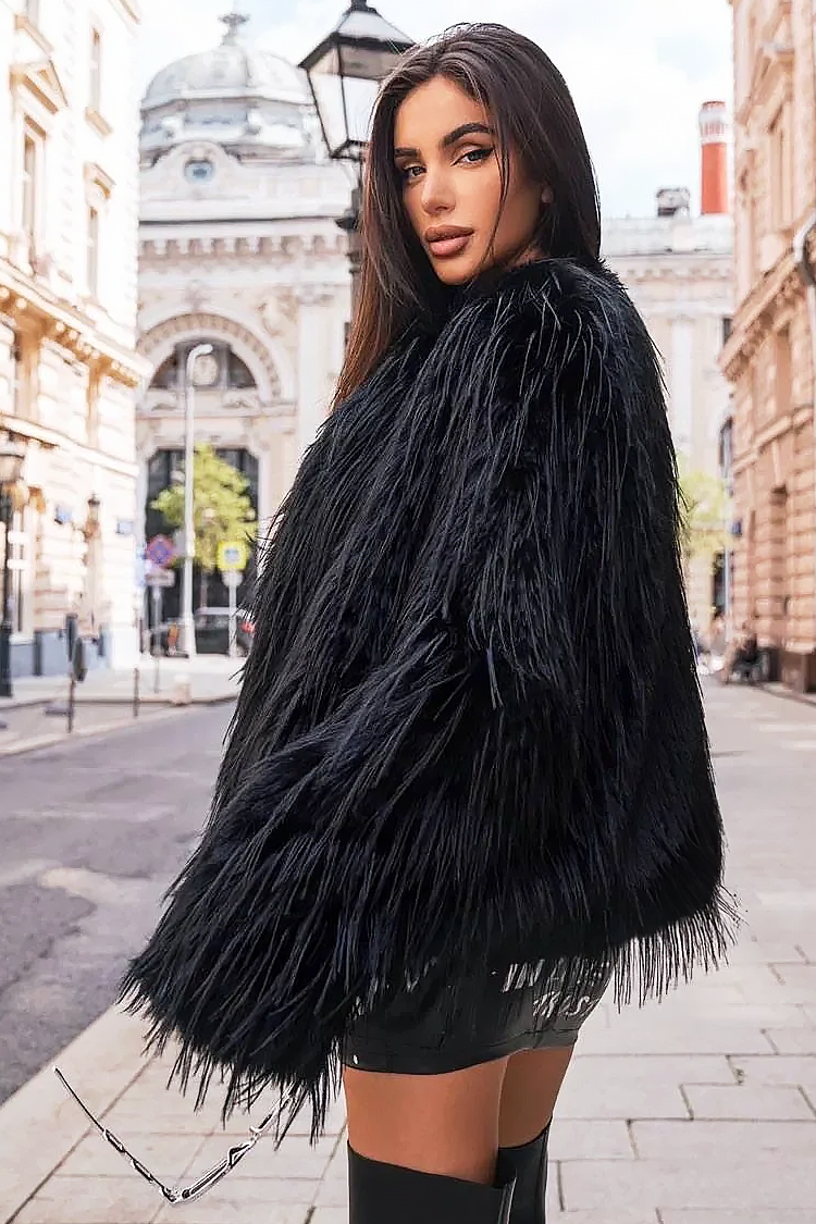 - Modelul este monocromatic din blană ecologică spectaculoasă.