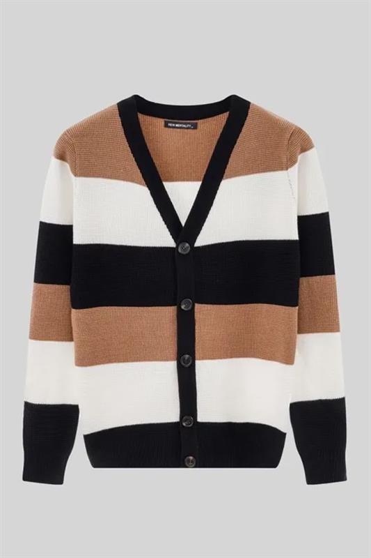 - Cardigan practic pentru bărbăti cu nasturi și model în dungi, potrivită pentru ținute la modă de zi cu zi.