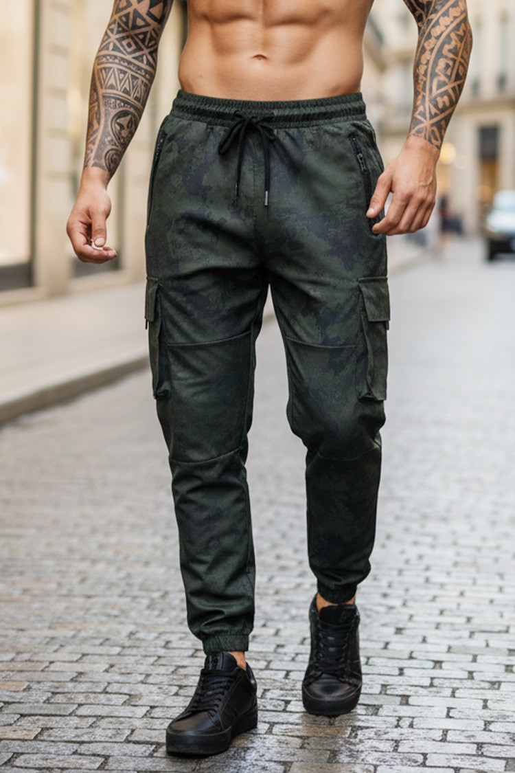 - Pantaloni cargo pentru bărbăti de culoare khaki cu model camuflaj, potriviți pentru viata de zi cu zi.