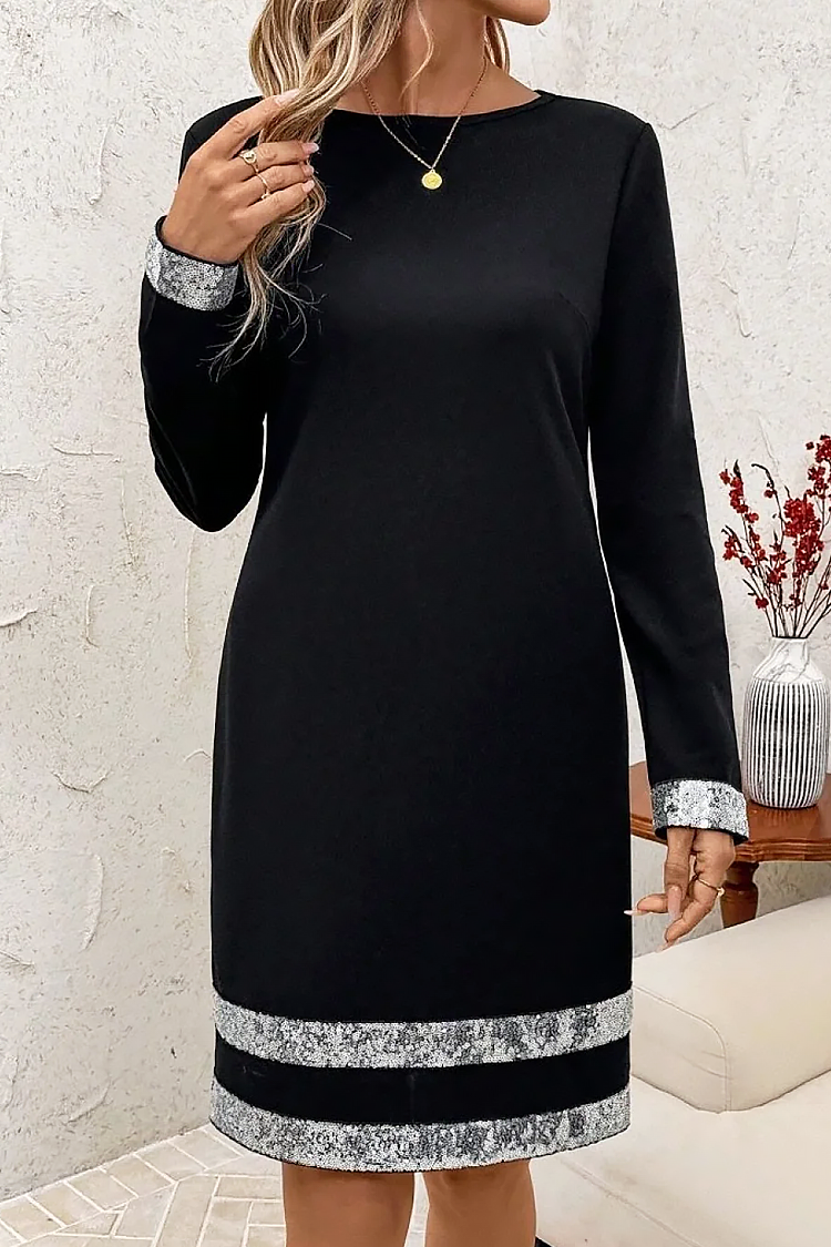 - Modelul are o croială confortabilă, decolteu rotund și detalii trălucitoare.