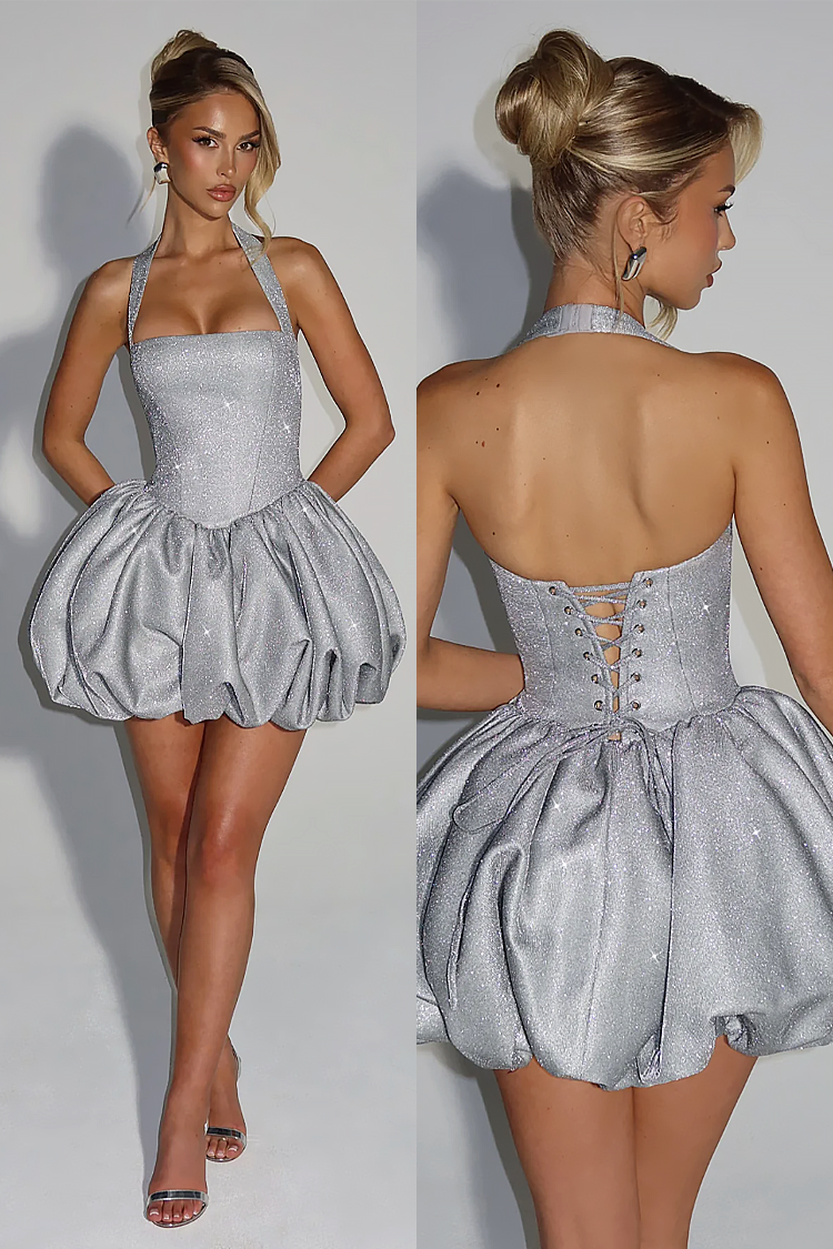 - Modelul are o croială de tip corset la modă, șireturi spectaculoase la spate și un decolteu sexy.