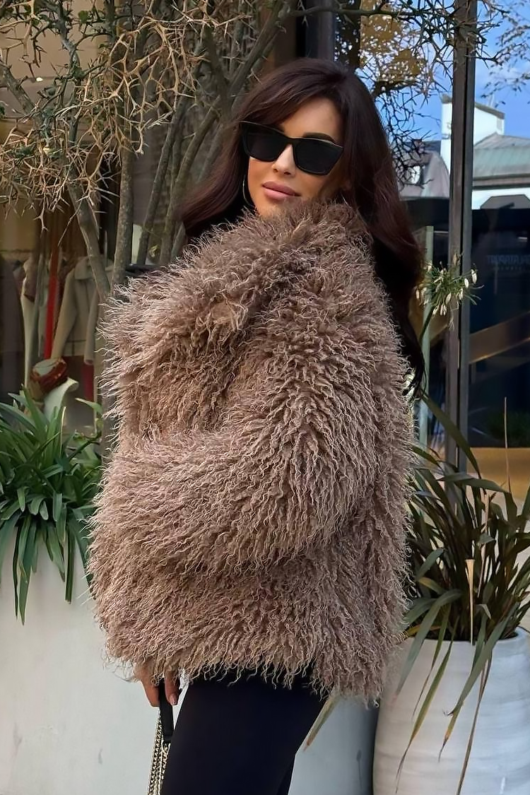 - Modelul monocromatic din o blană ecologică spectaculoasă.