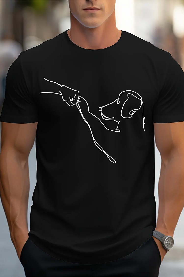 - Tricou pentru bărbăti practic, cu o croială confortabilă și imprimeu cu câine potrivit pentru viața de zi cu zi, pentru o plimbare sau ca o completare a ținutei tale sport.