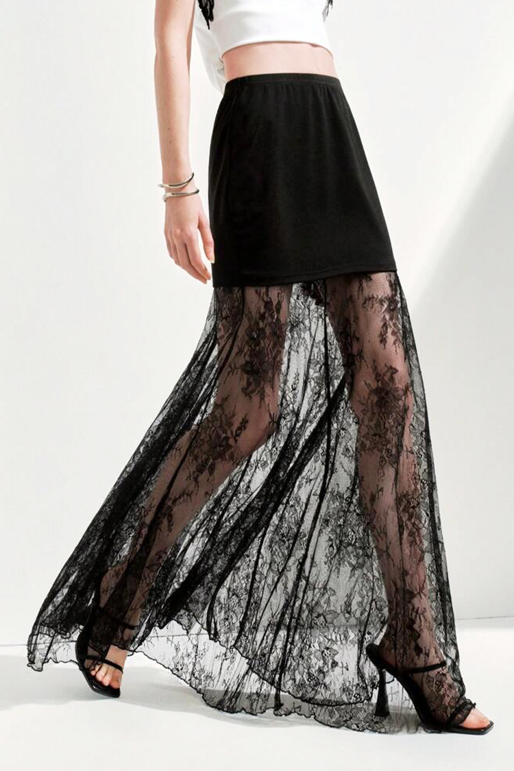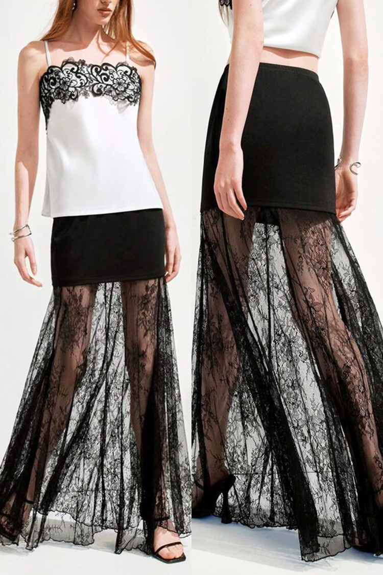 - Fustă lungă elegantă și delicată, în culori clasice, potrivită pentru diverse ocazii de modă.