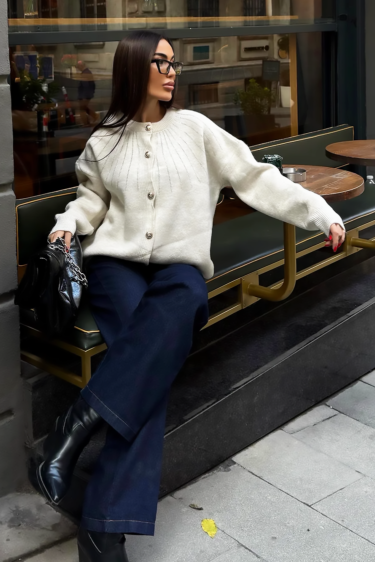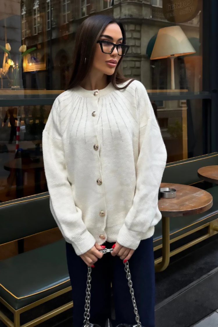 - Cardigan elegant pentru femei, cu o croială clasică, de culoare ecru.