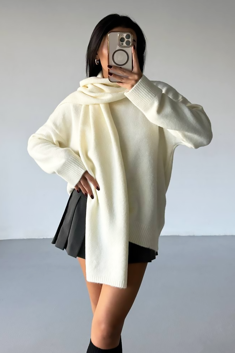 - Un pulover practic cu un model monocromatic, potrivit pentru viata de zi cu zi.