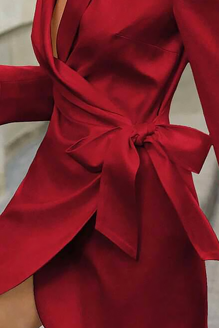 - Modelul are decolteu V și o curea textilă ce poate fi aranjată ca o panglică în talie.