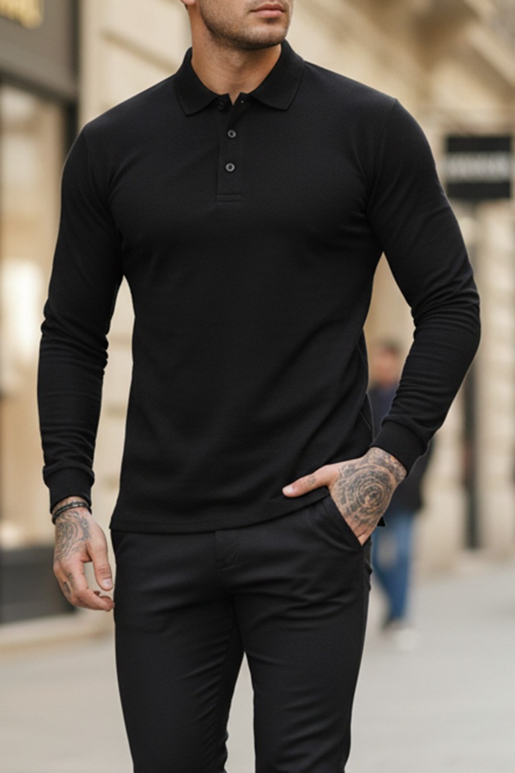 - Bluză pentru bărbăti sport-elegantă, cu guler, decolteu cu nasturi și mâneci cu manșete stretch, potrivită pentru viata de zi cu zi.
