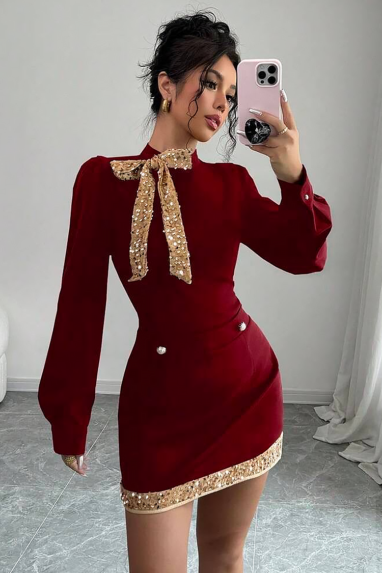 - Pentru look-ul tău festiv, alege această rochie scurtă cu un design atrăgător.