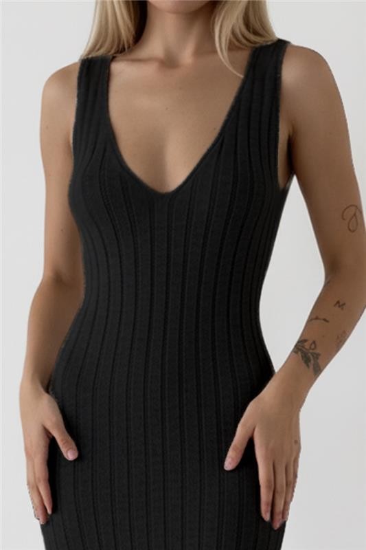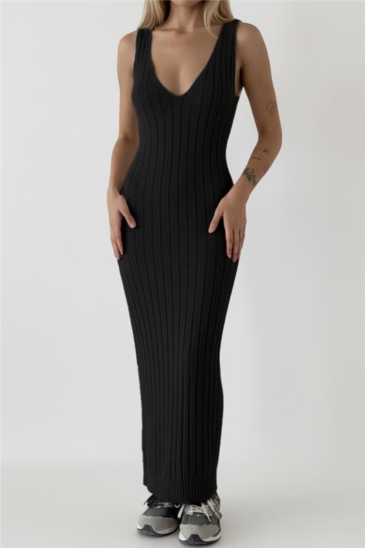 - Puloverul are o croială clasică, iar rochia are o lungime lungă și o croială mulată.