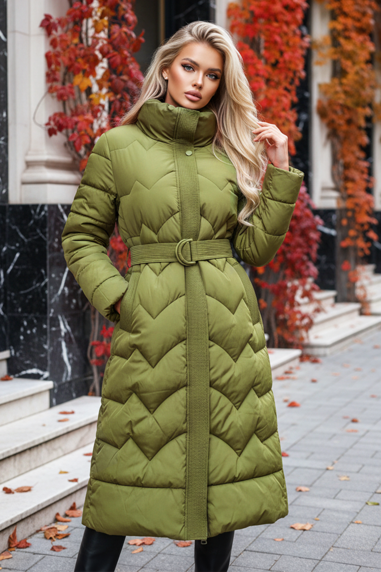 - Modelul are o croială lejeră, buzunare practice și o curea spectaculoasă.
