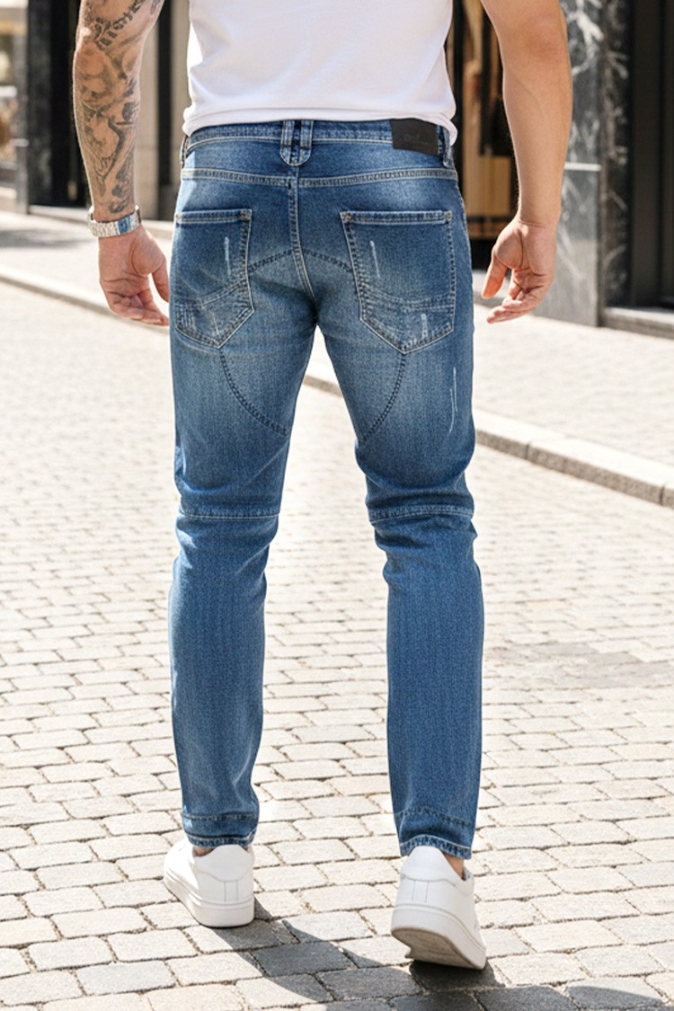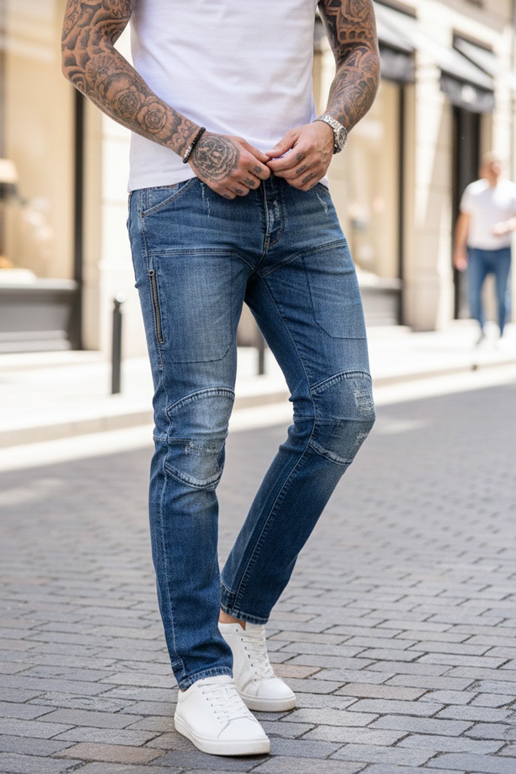 - Model practic de blugi cu zgârieturi și cusături decorative pe picioare, potrivit pentru viata de zi cu zi.