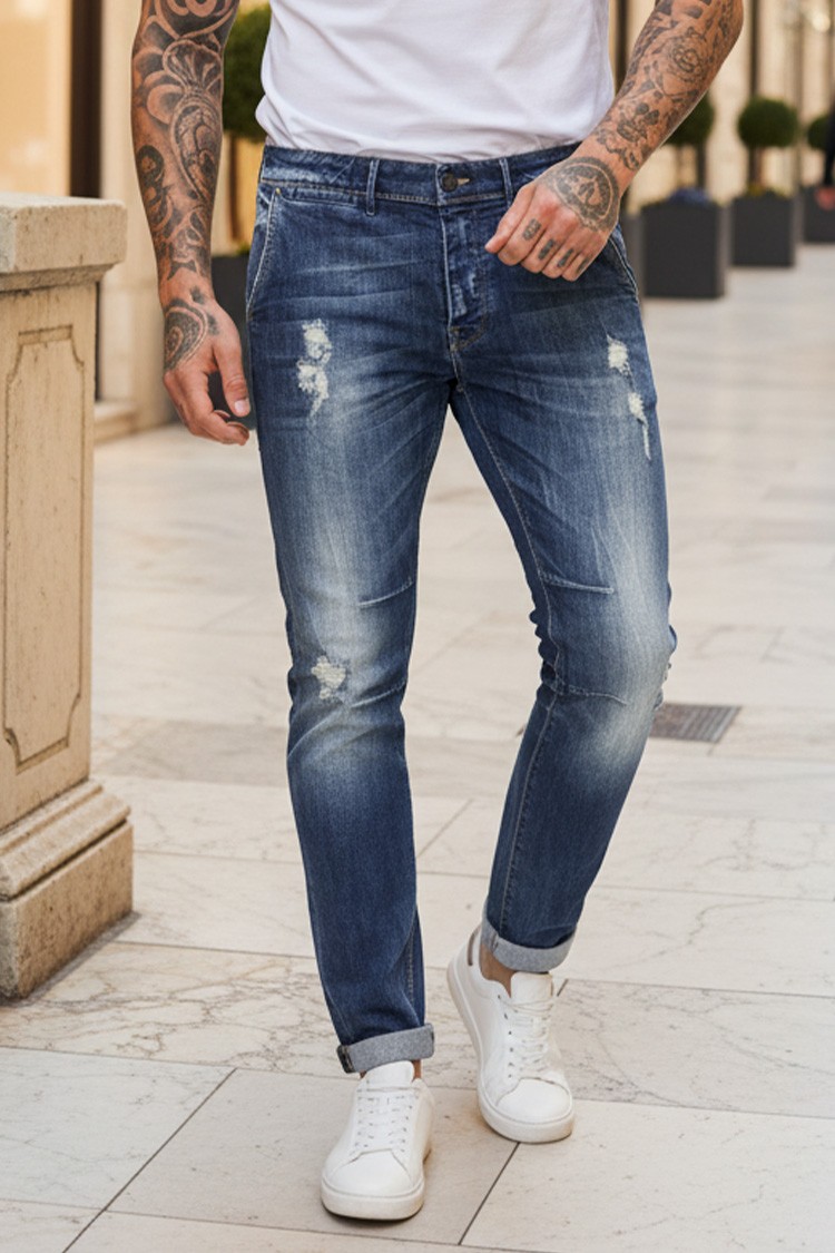 - Sunt confecționați din denim de bumbac pentru un confort maxim. Se închid cu fermoar și nasture.