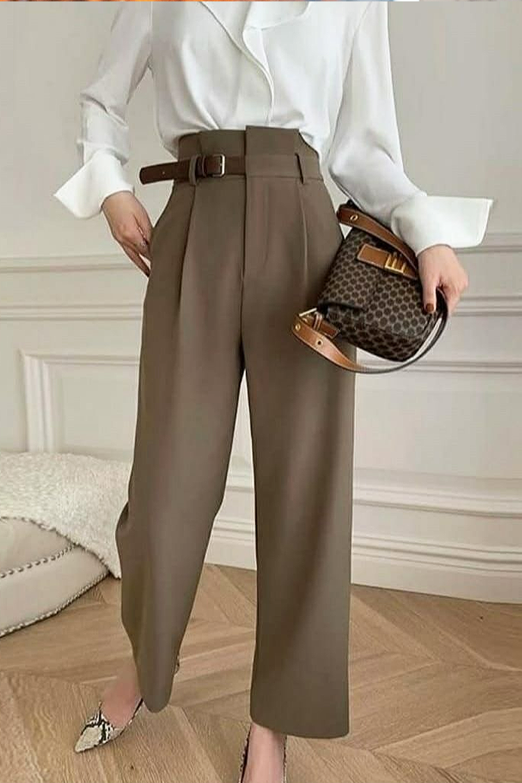 - Pantaloni clasici de damă, potriviți pentru ținute la modă de zi cu zi.