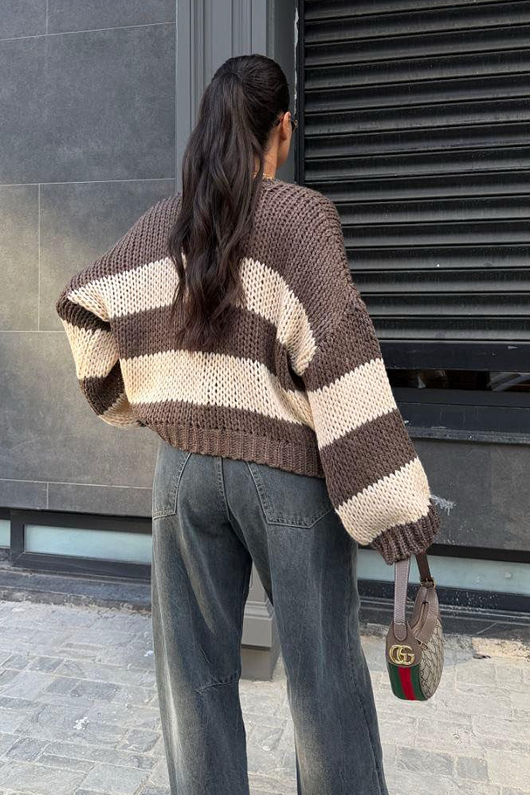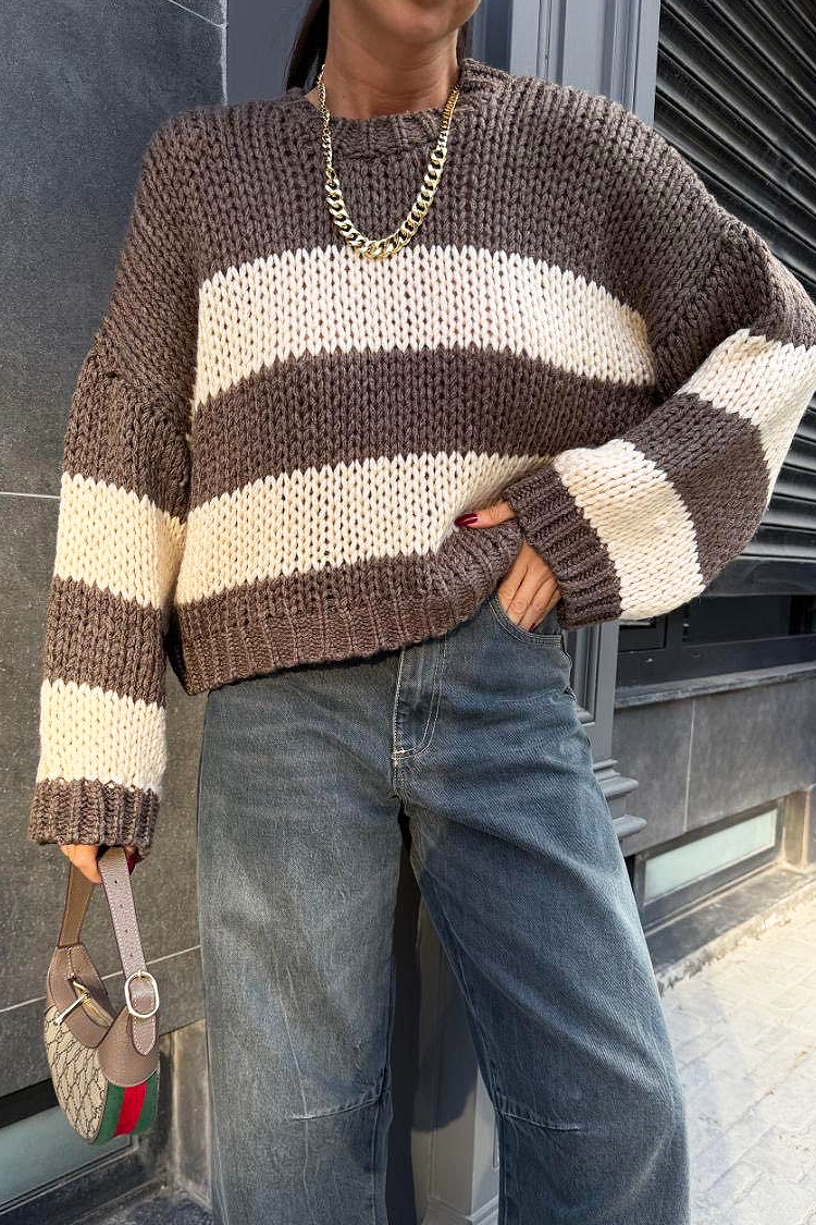 - Se potrivește perfect oricărei siluete. Modelul are mâneci lungi și un decolteu clasic, precum și o croială oversize.