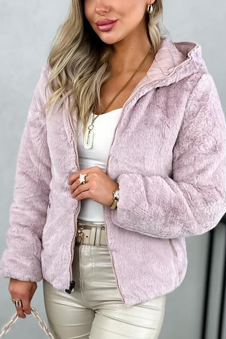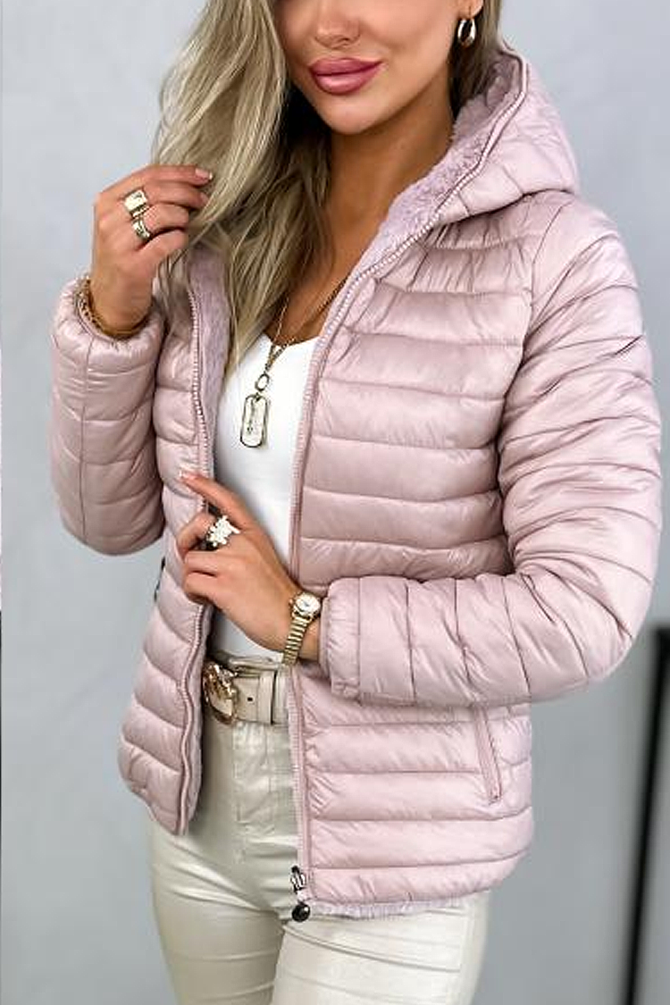- Modelul are o croială confortabilă, glugă, buzunare, puf pe toată lungimea și se închide cu fermoar.