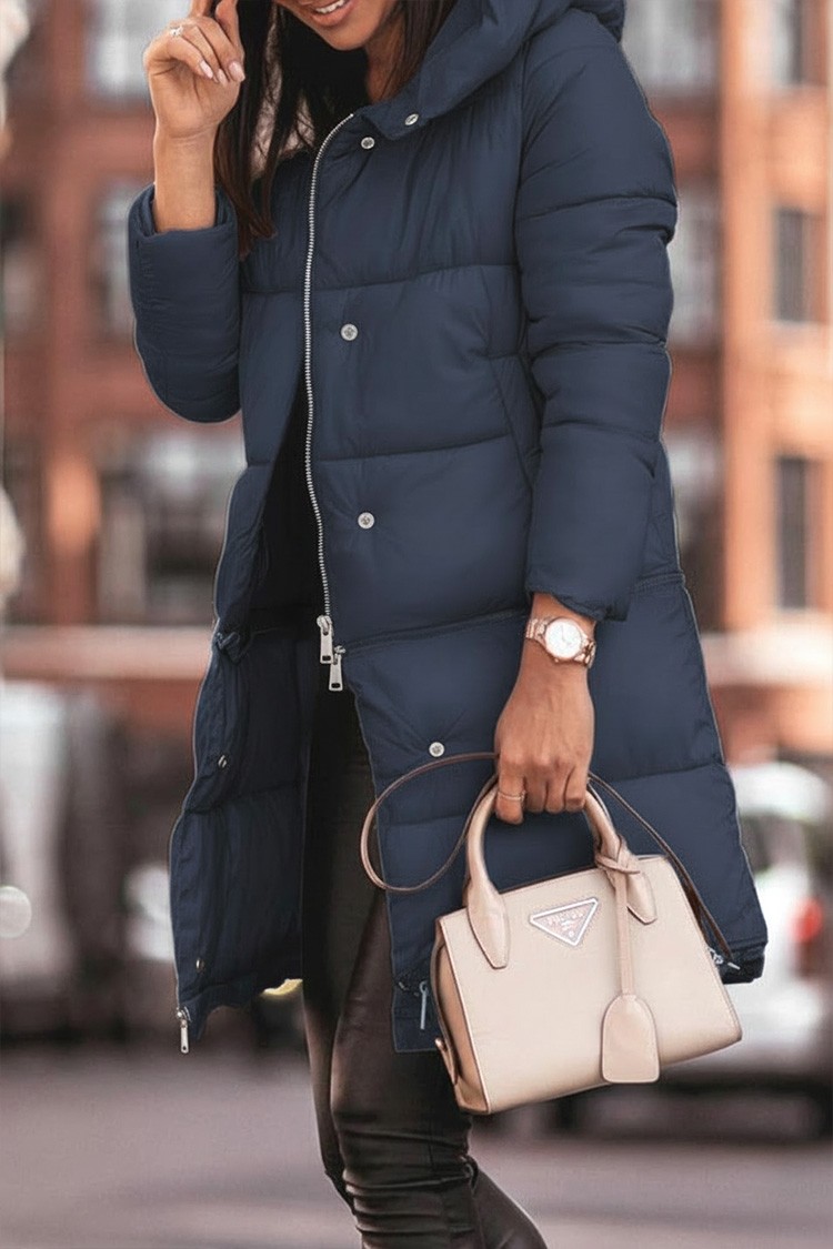 - Modelul are glugă, astfel încât să fii mereu pregătit în lunile reci. De asemenea, are buzunare laterale unde poți depozita tot ce îți dorești.