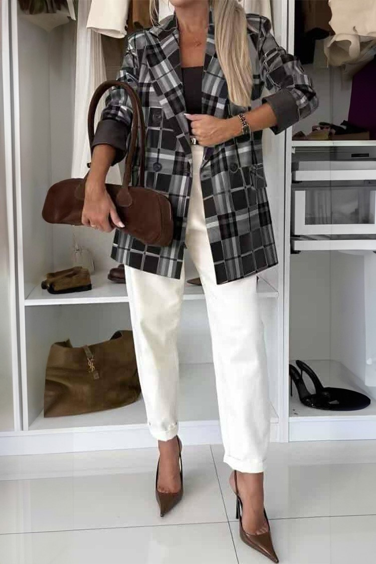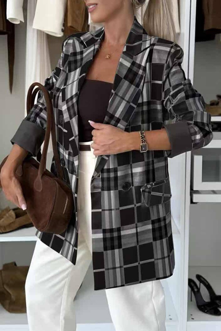 - Diversifică-ți look-ul cu această sacou cu design în carouri, potrivită pentru diverse combinații de modă.