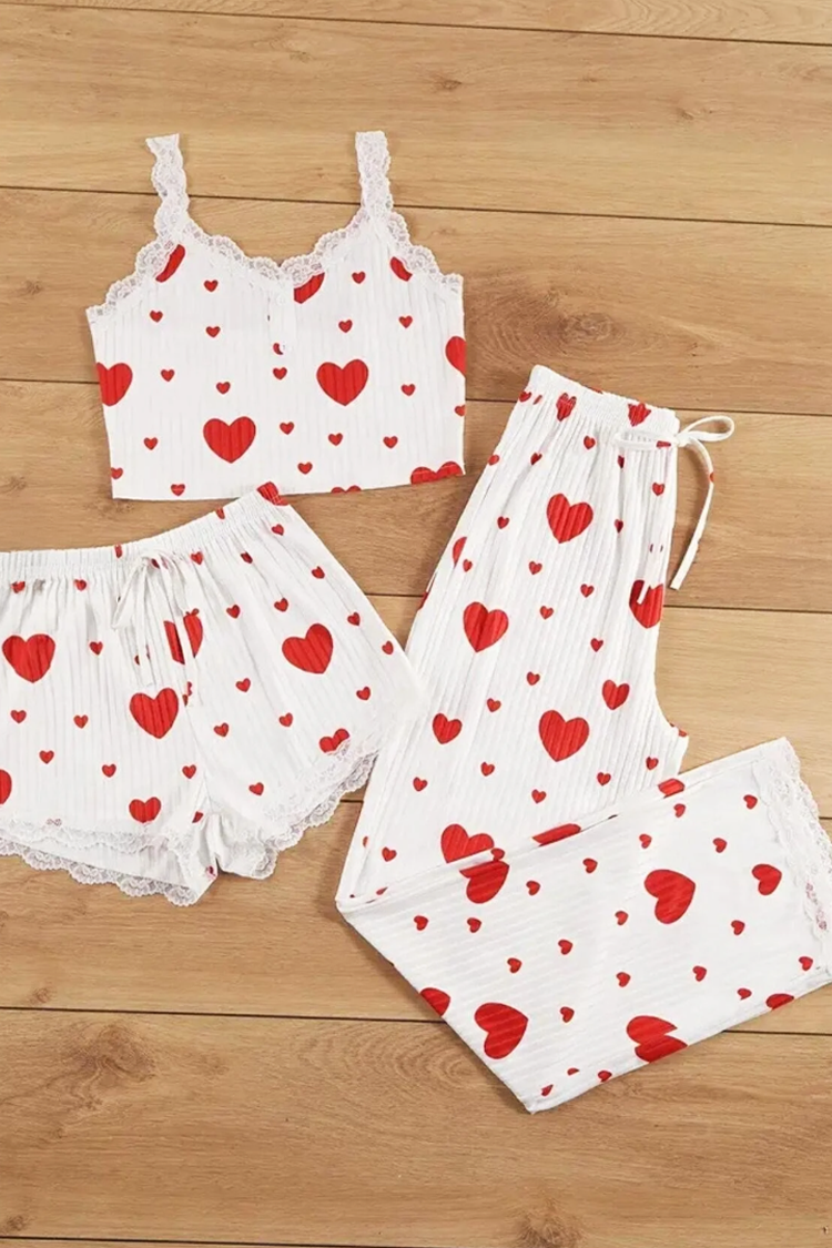 - Partea de sus are bretele confortabile și o lungime scurtă, iar pantalonii au talie înaltă și o croială lejeră. Pantalonii scurți au legături în talie și dantelă pe picioare.