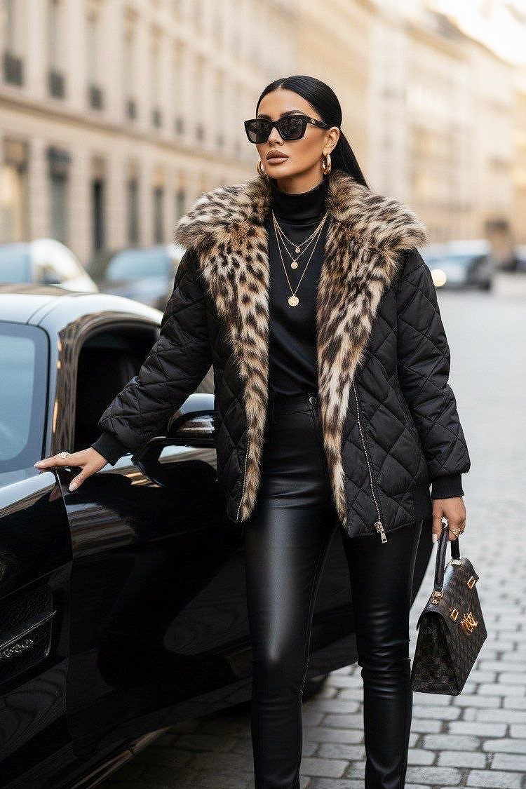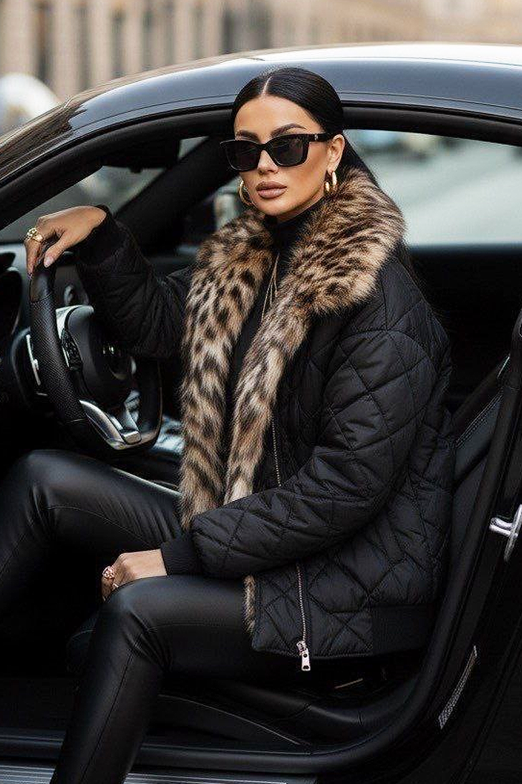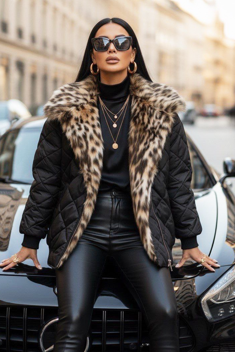 - Modelul are o croială confortabilă și un puf spectaculos cu model leopard.