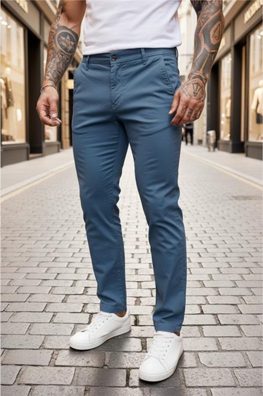 - Model basic pantaloni pentru bărbăti cu picioare drepte, de culoare coral, potriviți atât pentru ținute de zi cu zi, cât și pentru ținute mai elegante.