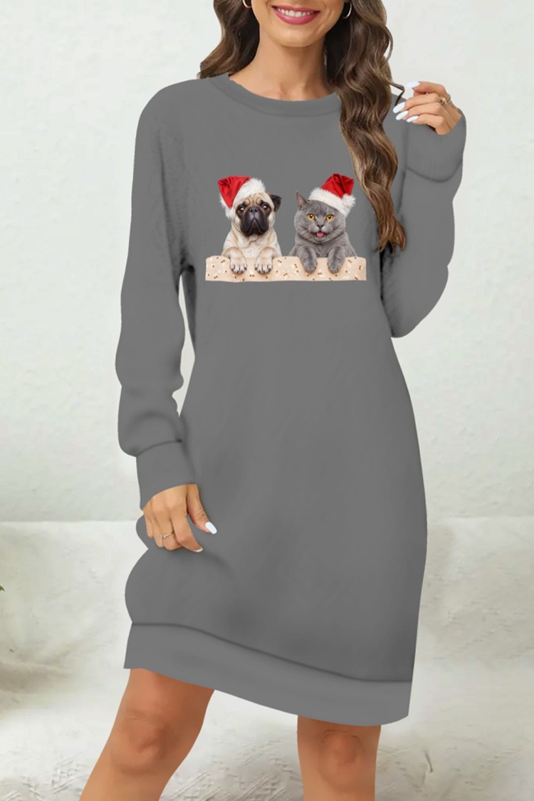 - Rochia are o croială confortabilă și lejeră, mâneci lungi și un imprimeu de Crăciun.